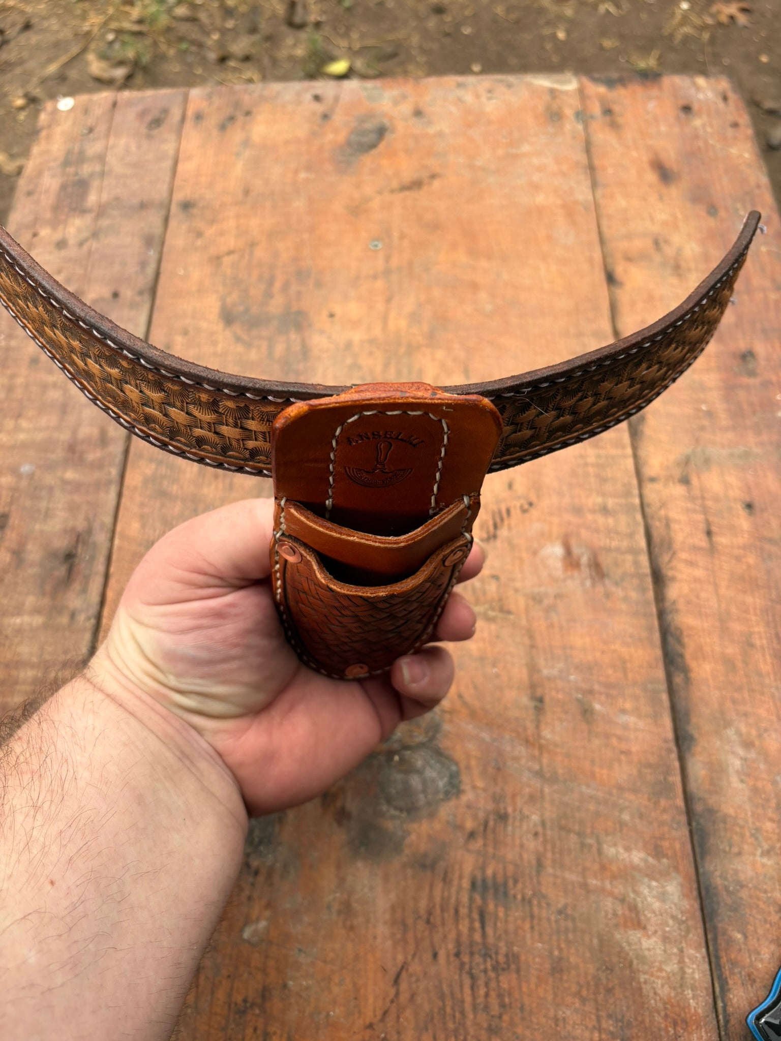 Work sheath. Great for carrying knifes, scissors, or any of your must have EDC gear. Pattern is customizable. Just msg me.